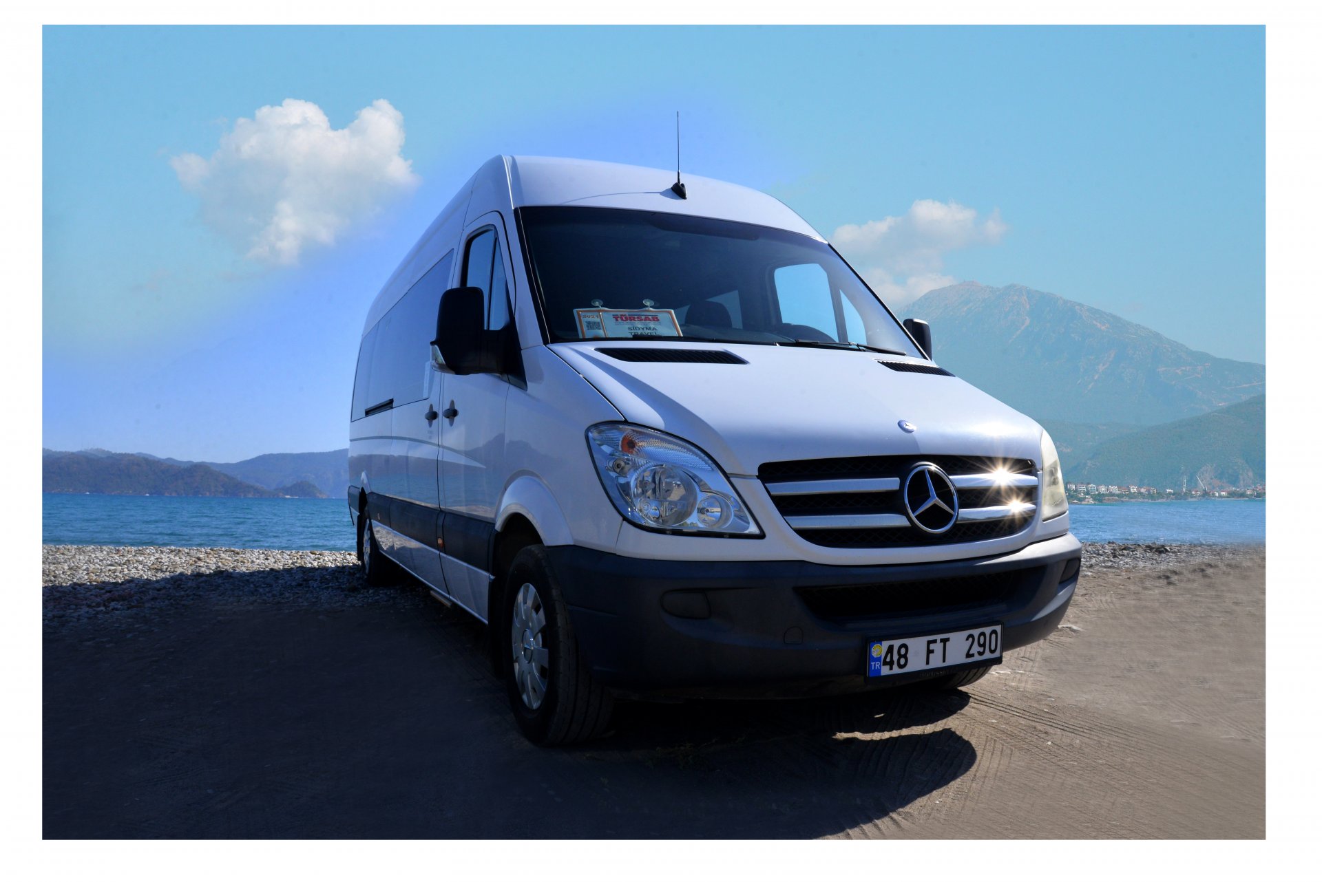 Mercedes Sprinter ile Dalaman havalimanında turistik destinasyonlar Fethiye, Ölüdeniz, Çalış direk transferlerini konforlu şekilde güvenle yapıyoruz